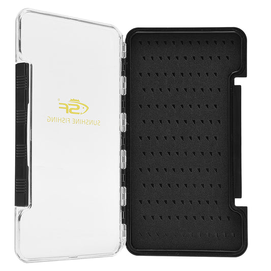 SF Slim Fishing Box Thin Trout Flies Plastic Clear Lid Triangle Black Foam