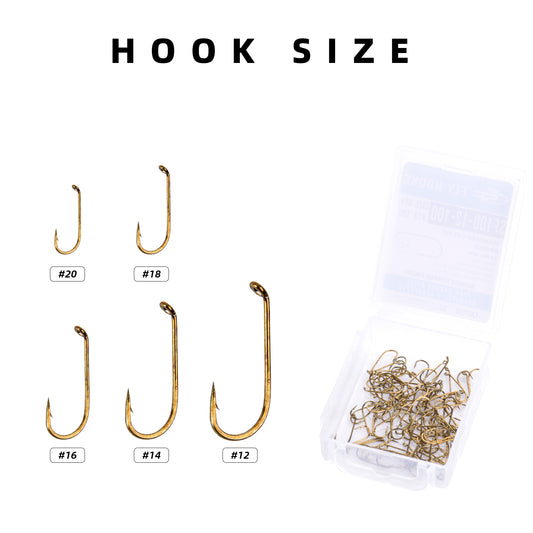 SF Standard Dry Fly Tying Hook Micro Barbed for Traditional Dry Flies with Mini Box #10 #12 #14 #16 100Pcs