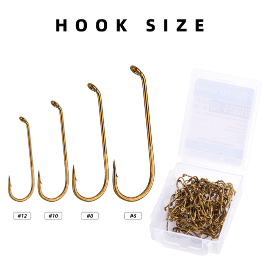 SF Nymph Streamer Dry Fly Tying Hooks 3XL with Mini Storage Box #8 #14 100Pcs