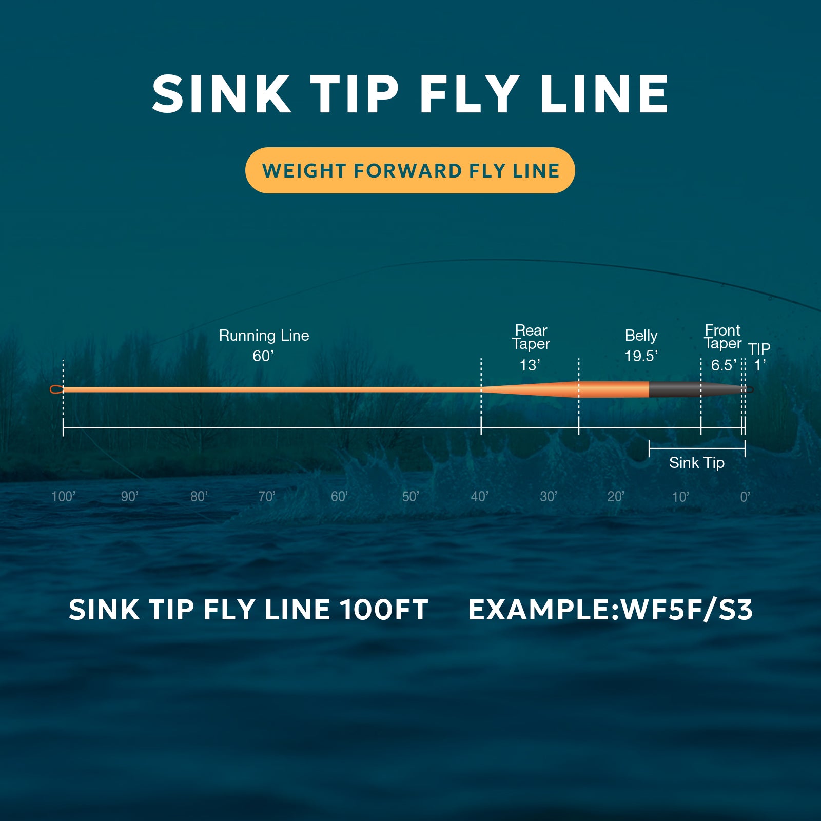 - All Length: 100FT, fast-sinking 11FT tip, Sink rate ips3.5.