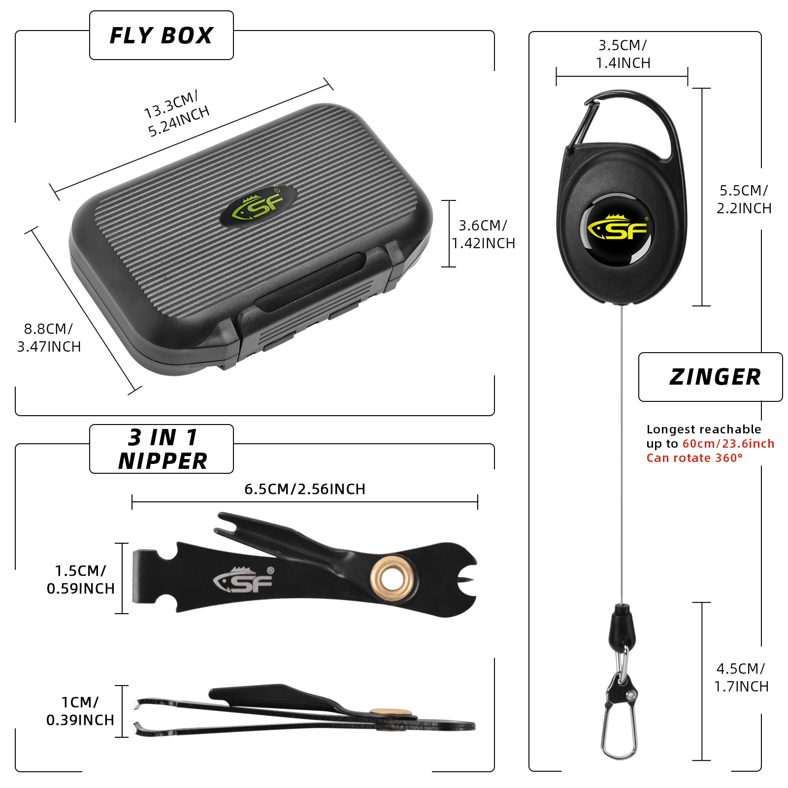Fly Rod Combo Components: SF fly fishing rod combo includes a 7 or 8wt 9FT fishing rod, carrying case for easy protection, 7/8wt aluminum alloy fly reel pre-loaded with fly line, backing line, and tapered leader. And fly flies are packaged in a fly box, zinger 3pcs, a line nipper, all of these are in the P-type rod tube, which is convenient to carry around for new and younger anglers as travel case.