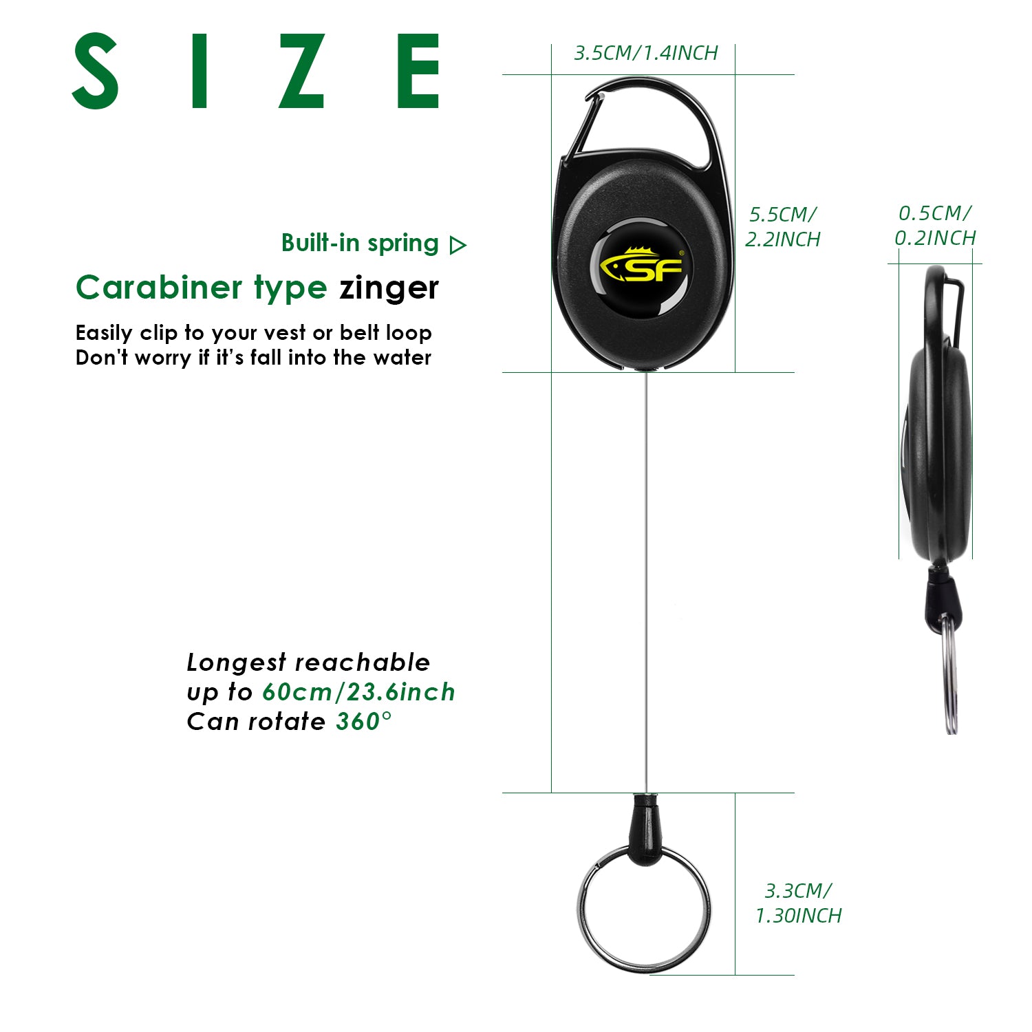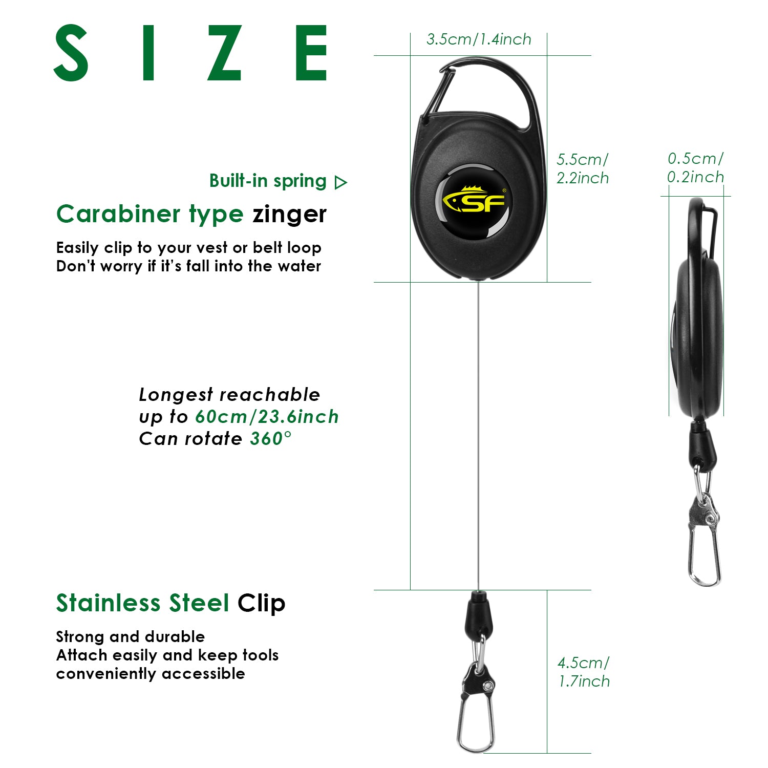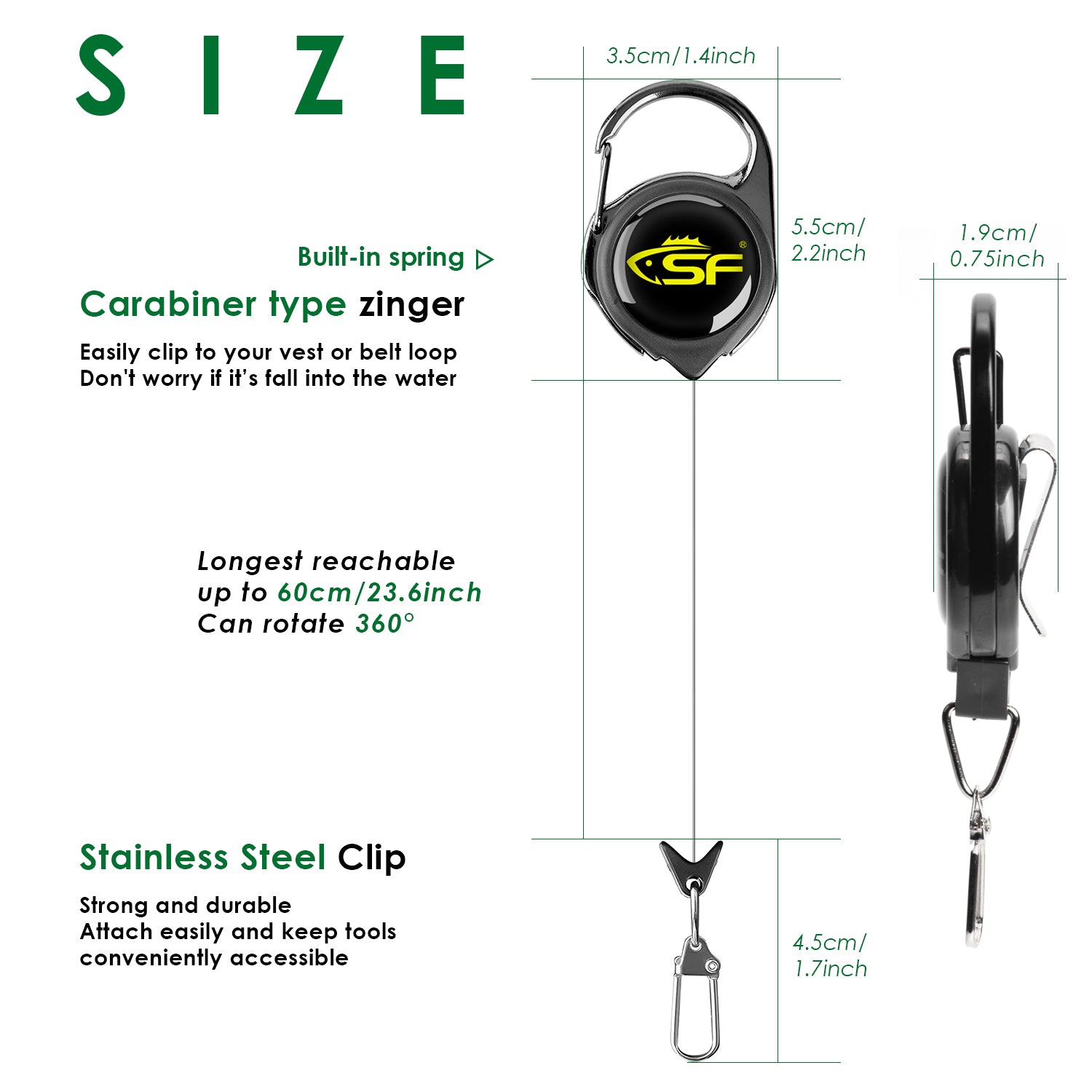 Use SF fishing zingers on your fishing jacket to hold your little tools like line nippers,line straightener, carabiners,lip grippers and pliers, keep them safe and never lose.