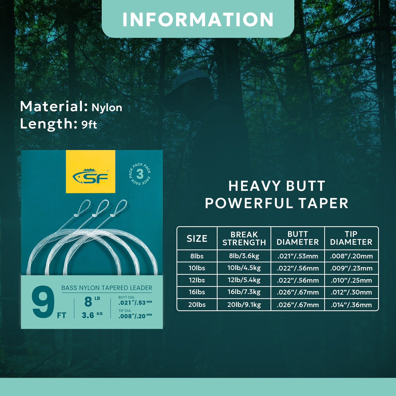 SF Pre-Tied Loop Heavy Butt Fly Fishing Bass Tapered Leader